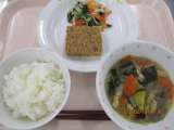 ◆◇今日の献立◇◆ チキンカレーライス こんにゃくサラダ 牛乳 <主な食材の産...