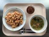◆◇今日の献立◇◆ 高野豆腐のそぼろかけごはん 大根サラダ かきたま汁 牛乳