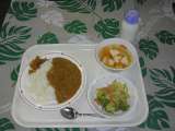 本日の給食『キーマカレー・イタリアンサラダ・フルーツポンチ・牛乳』