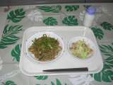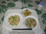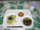 本日のメニュー『中華おこわ・白菜と春雨のスープ・チジミ・牛乳』