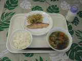 本日のメニュー『ごはん・鮭の西京焼き・おひたし・沢煮椀』