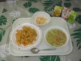 本日のメニュー『チキンライス・ヌードルスープ・フルーツヨーグルト・セレクトドリンク』