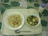 3月14日(木)メニューは、ナシゴレン、ニラたまスープ、杏仁豆腐、牛乳です。