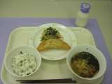 わかめとじゃこのご飯 ジャンボぎょうざ 塩ナムル ひじきスープ 牛乳