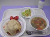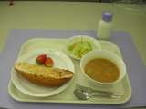 3月17日(月) ビスキュイパン、白インゲンのいなか風スープ、コーンサラダ、くだ...