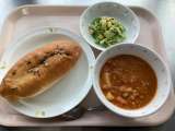 ◆◇今日の献立◇◆ ガーリックトースト ビーンズシチュー バジルサラダ 牛乳