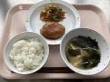 ◆◇今日の献立◇◆ ごはん 塩こうじハンバーグ わさび和え じゃがいもとわかめの...