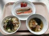 ◆◇今日の献立◇◆ ちらし寿司 さけのみそマヨネーズ焼き すまし汁 いちご 牛乳