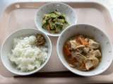 ◆◇今日の献立◇◆ ごはん ねぎみそ 肉豆腐 わかめサラダ 牛乳