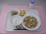 メニュー:ごはん・マーボ豆腐・ナムル・くだもの・牛乳