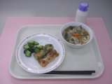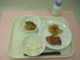 メニュー:ごはん・野菜のうま煮・野菜の甘酢かけ・牛乳