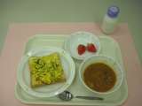 メニュー:ハンガリアンシチュー・たまごトースト・くだもの・牛乳