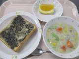 ◆◇今日の献立◇◆ 黒ゴマトースト 春野菜のシチュー 河内晩柑 牛乳 <主な食...