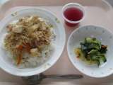 ◆◇今日の献立◇◆ 豚丼 わかめサラダ ぶどうゼリー 牛乳