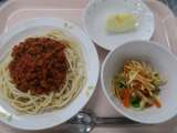 ◆◇今日の献立◇◆ スパゲティミートソース じゃがいものハニーサラダ りんご 牛...