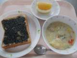◆◇今日の献立◇◆ 黒ゴマトースト 春野菜のシチュー 河内晩柑 牛乳