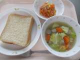 ◆◇今日の献立◇◆ いちごジャムサンド ポトフ にんじんとツナのサラダ 牛乳