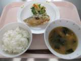 ◆◇今日の献立◇◆ ごはん さけのしょうが風味焼き ごま酢和え かきたま汁 牛乳