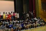 4年生は、得意技で悪役を退治するという寸劇で会場を沸かせました。そして、1年生に...