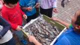 マスつかみとコースター作り。 クラスごとに順番に挑戦しました。水の冷たさとマスの...
