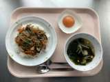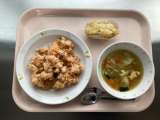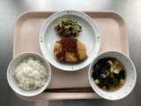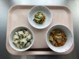 ◆◇今日の献立◇◆ ごはん あじのピリ辛ソース わかめナムル 沢煮碗 牛乳