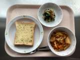 ◆◇今日の献立◇◆ ガーリックトースト マカロニのハヤシ煮 わかめサラダ 牛乳...