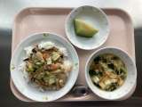 ◆◇今日の献立◇◆ 中華丼 卵とわかめのスープ メロン 牛乳