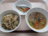 ◆◇今日の献立◇◆ 磯おこわ さばの西京焼き 沢煮碗 牛乳