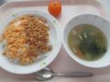 ◆◇今日の献立◇◆ 二色丼 とうがんスープ 冷凍みかん 牛乳