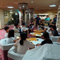 日光林間学園、最後の室長会議です。今日の反省と明日最終日の確認をしています。