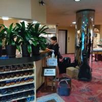 雨のため、朝食後に食堂で閉園式を行いました。3日間お世話になったホテル山月の方々...