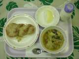 今日の給食『カレーピラフ・ヌードルスープ・きゅうりのひとしお・牛乳』