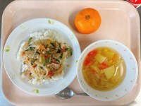 (献立)ねぎ塩豚丼野菜スープくだもの(みかん)牛乳ねぎ塩豚丼の豚肉は、体を動かすエネルギーを助けるビタミンB1が豊富な食材です。ねぎの他にもやしやにんじん、玉ねぎを加え、塩味をベースにさっぱりとした味...