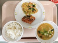 (献立)麦ごはんさわらの西京焼き野菜のおかか和え吉野汁さわらの西京焼きは、京都で昔から親しまれてきた西京味噌と、みりん、しょうが、しょうゆなどを合わせた調味液をさわらにじっくり漬け込んで焼き上げました...