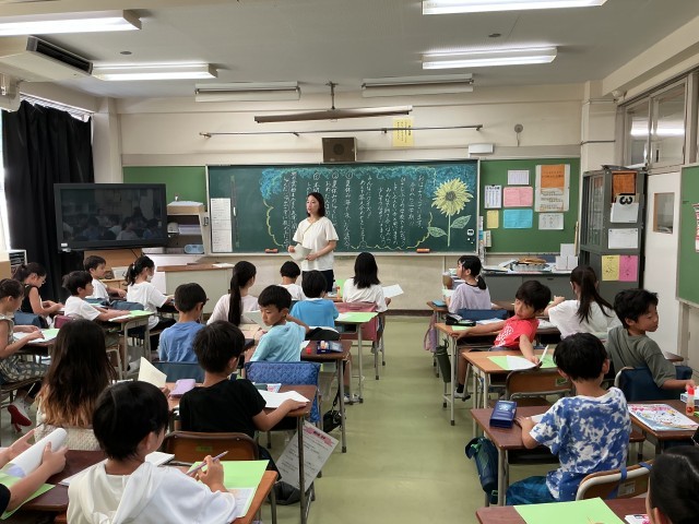 いよいよ2学期が始まりました!「先生も海に行ったから日焼けしたよー」と言うとみんなで腕を見せ合いっこをしたり、宿題をいつまでに終えたか!?など夏休み中のできごとを語る笑顔が教室に溢れていました。