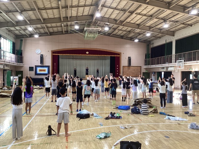 防災サマーキャンプ 朝のラジオ体操・閉会式