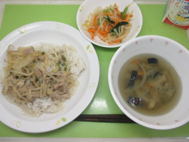 ねぎ塩豚丼・牛乳・野菜の菊花あえ・みそ汁