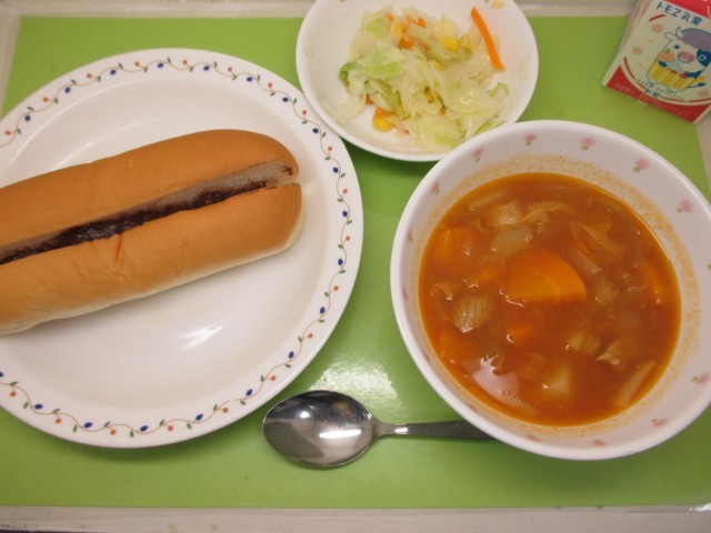 ココアクリームパン・牛乳・ロシアンシチュー・コーンサラダ