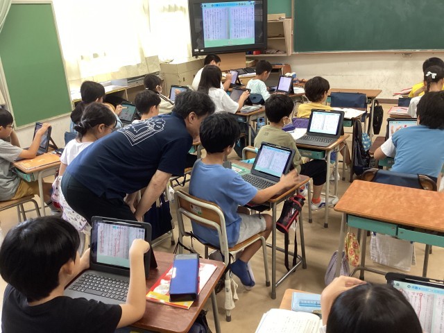 4年生の国語の学習です。文章の推敲が今日の学習内容です。1年生にもわかるように文章を直すことをめあてに取り組んでします。漁業をわかりやすく言うには???