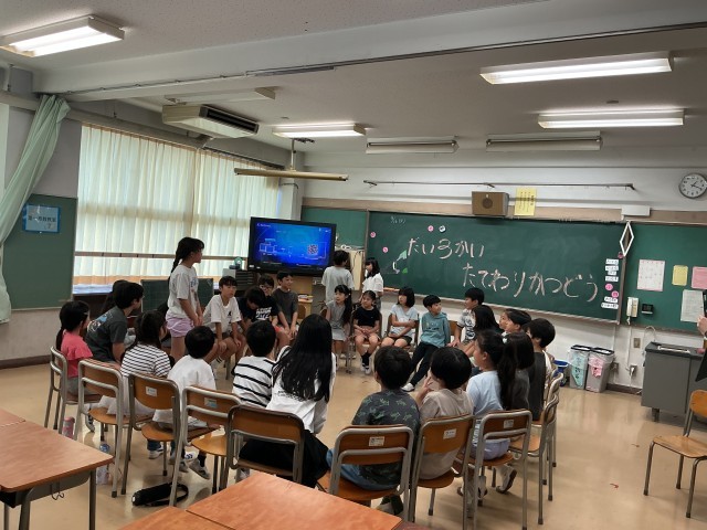 2学期最初のたてわり班活動が行われました。定番のなんでもバスケットやピンポン球リレーの他、新聞紙を使ったゲームを考えた班もありました。久しぶりの他学年との交流はとても楽しいひと時となりました。