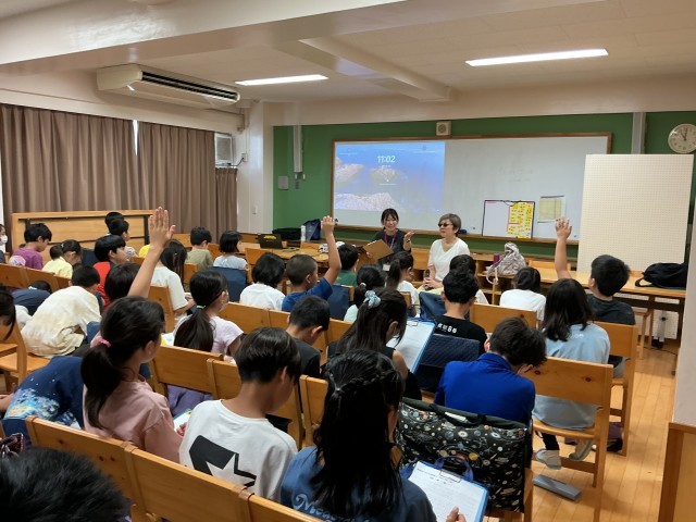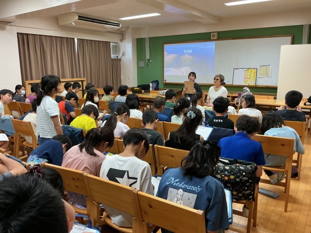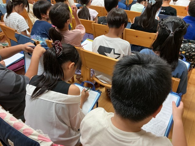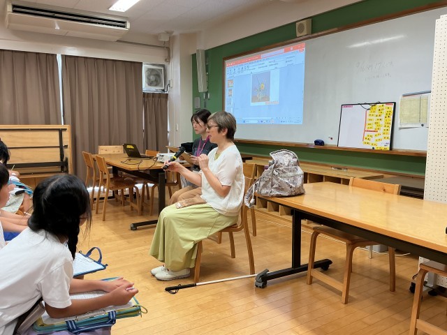 来たる9月26日の白杖体験に先駆けて、目の不自由な方より日常生活やどんな時に声がけをしてほしいかなど色々お話しいただきました。「点字を打ち間違えた時の修正方法は?」「迷子になったことはありますか?」などの子どもたちの質問にも丁寧にお答えいただき、子どもたちにとって大切なことをたくさん学ばせていただきました。