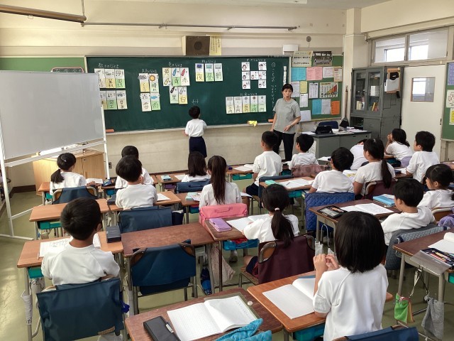 2年生の国語の授業です。言葉や感じを集めて仲間分けをする学習です。どの子もやる気に満ちていて、思わず「はーい」と声に出してしまうほどでした。