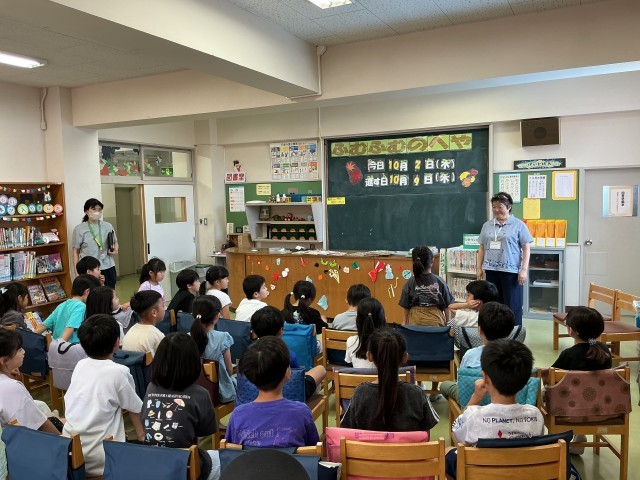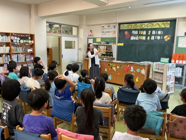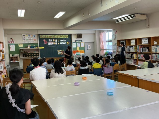 今日の読み聞かせは「きょうのごはん」「ぎゅうぎゅうかぞく」「どこからきたのおべんとう」「きりみ」の4冊でした。読んでいただいた感想を言う場面ではたくさんの手が上がりました。読んでいただく事をきっかけに学校の図書室でお気に入りの本をたくさん見つけられるといいですね。