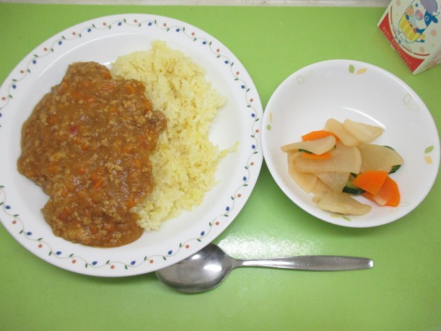 キーマカレーライス・牛乳・ふくじんづけ風サラダ