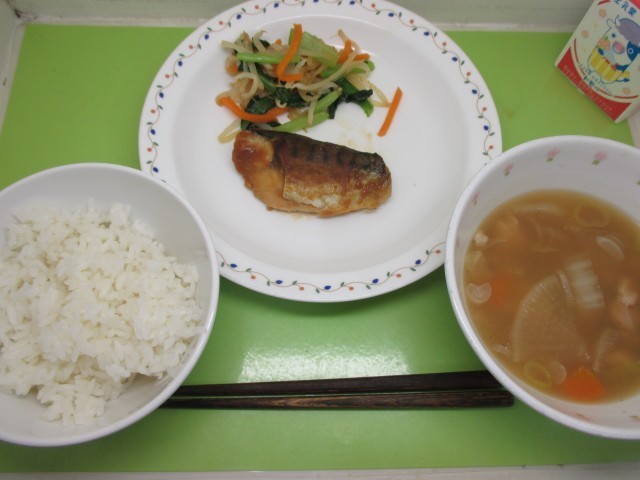 ごはん・牛乳・さばの味噌煮・からしあえ・もちもちスープ