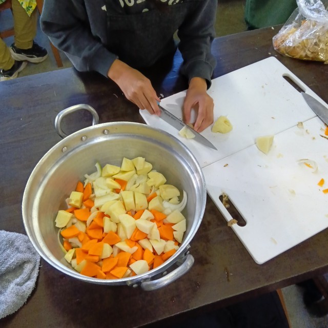 班で協力してカレーを作り上げました。