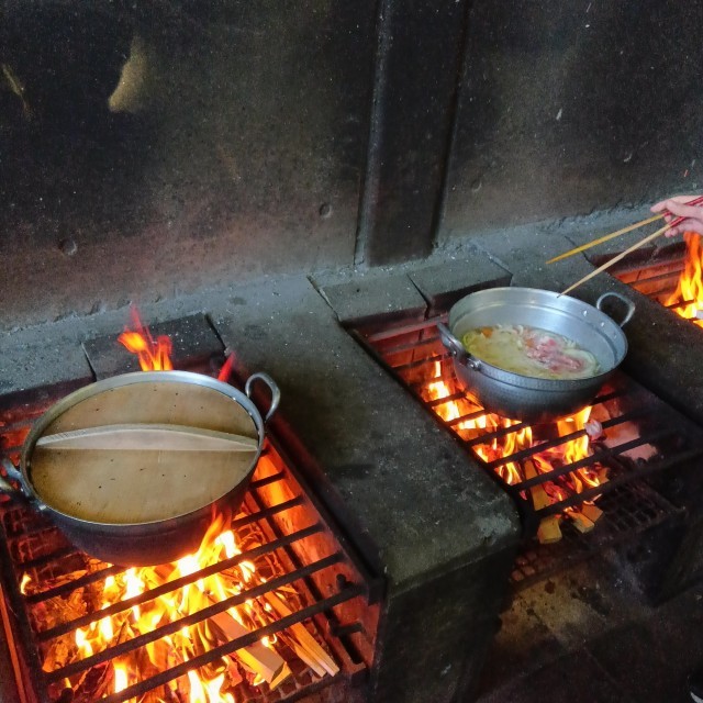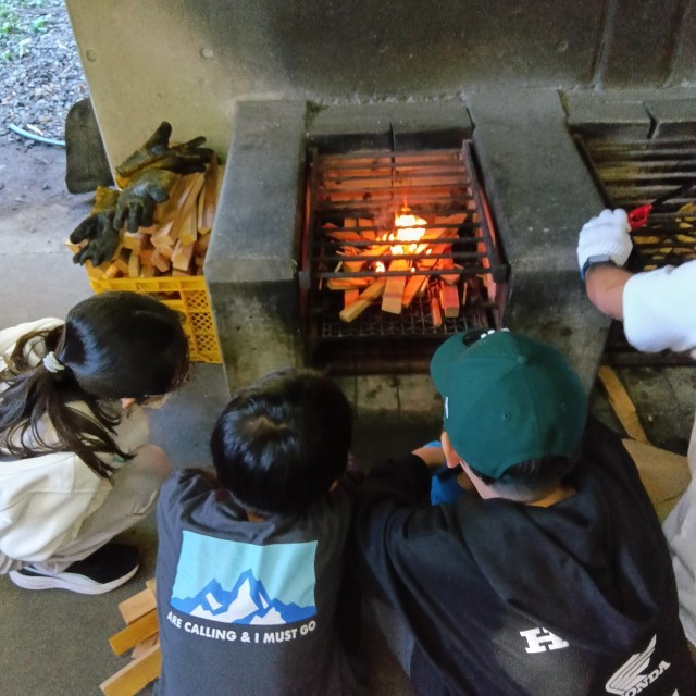 火起こしと調理に分かれて行い、