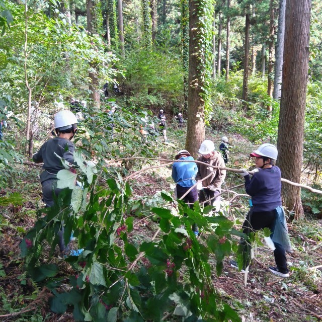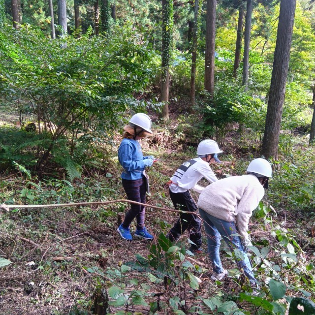 初めての間伐で子供たちは夢中になりながら