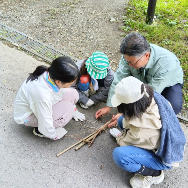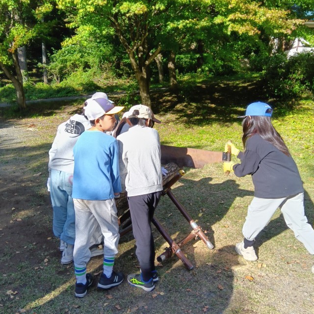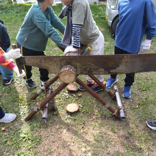 林業体験では、間伐とコースター作りを行いました。