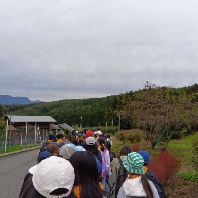 たくさんの自然に触れながらりんご狩りに向かいます。